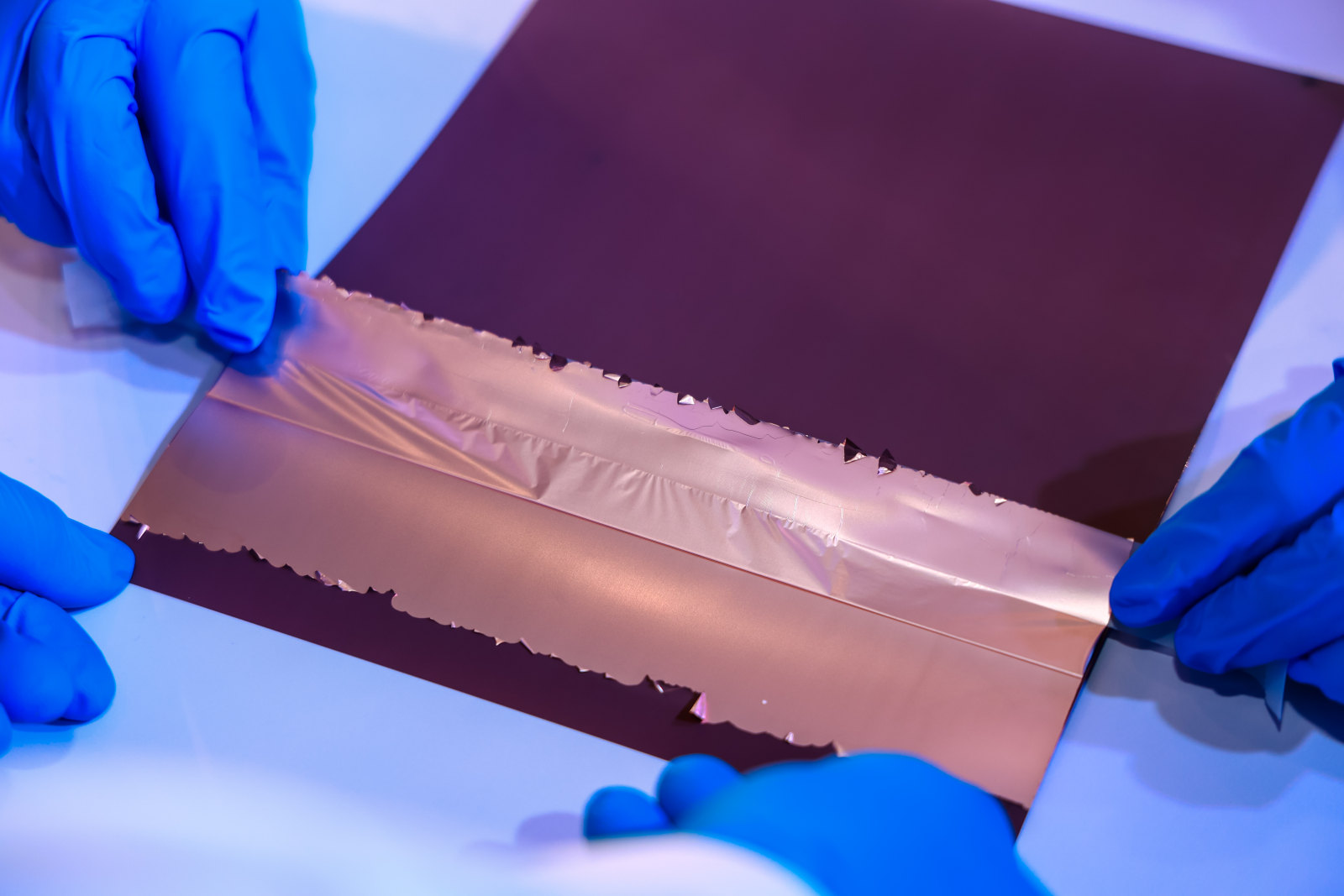 同时该款铜箔具备高剥离强度、载体易剥离等特点,现场演示的剥离过程,画面效果令人震撼!