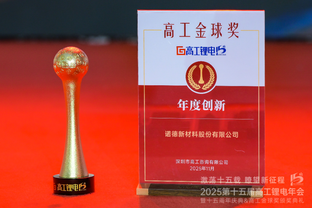 在2025高工金球奖颁奖典礼上,诺德股份凭借镀镍合金箔产品,荣获年度创新技术/产品奖项,该奖项主要表彰2025年度具有前瞻性、先导性和探索性技术的企业和产品。